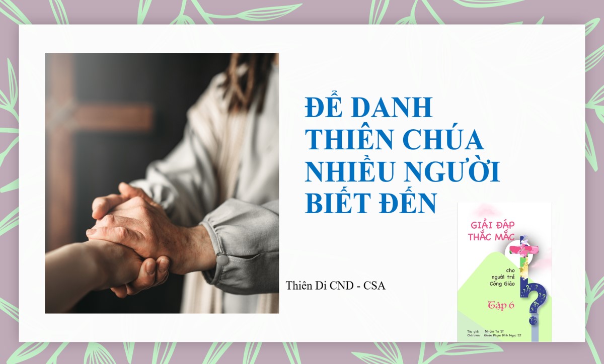 Trên đây là một vài gợi ý để giúp bạn làm Danh Thiên Chúa nhiều người biết đến, mến chúc bạn có thật nhiều sức khỏe, niềm tin và lòng mến để làm Danh Chúa lan tỏa đến những người bạn gặp gỡ.