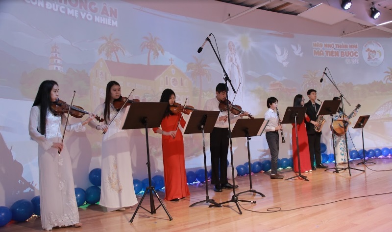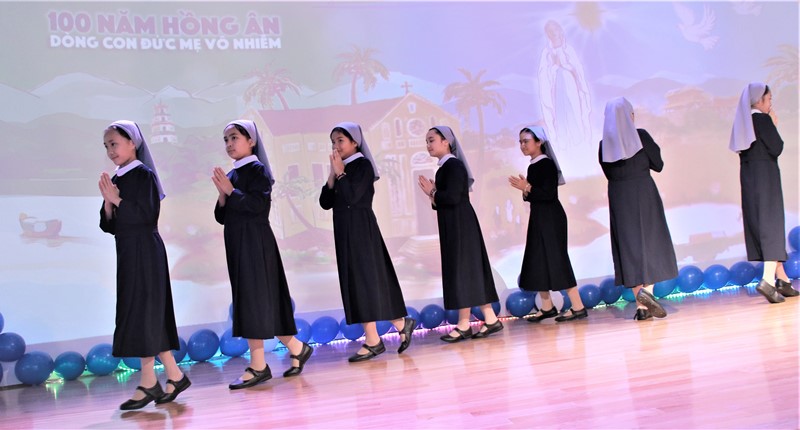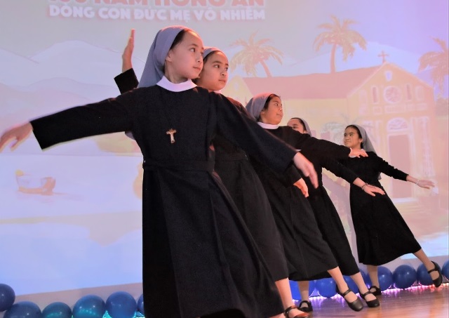 Trong phần văn nghệ người ta thấy có 2 MC là một Sơ Con Đức Mẹ Vô Nhiễm và một thanh niên giới thiệu chương trình. Chương trình văn nghệ gồm ca, vũ, nhạc, kịch do các Sơ, giới trẻ và các em bé trình diễn, không phải kiểu văn nghệ bỏ túi, nhưng có tập dượt trước.