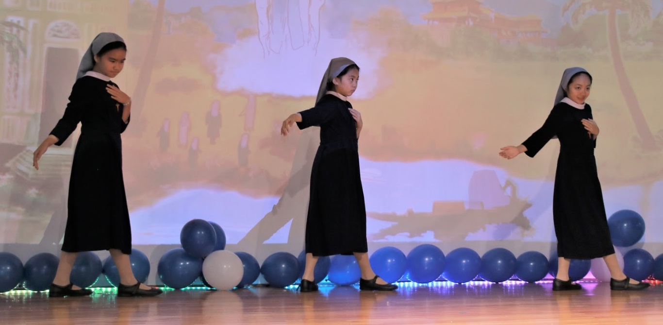 Mở đầu là màn vũ khúc của các Sơ để gợi cảm hứng cho những màn trình diễn sau đó. Tiếp đến là màn vũ của đoàn thiên thần tí hon, cánh cụt. Các thiên thần tí hon múa khá đều đặn, nhớ được những tác động tay, chân, mình mẩy và thân mình, cổ tay, cánh tay, bàn tay, ngón tay, cổ chân, bàn chân, gót chân, đầu gối. Thỉnh thoảng có những thiên thần tí hon liếc mắt xuống xem có khán giả nào ngắm nhìn mình không? Người ta còn thấy có 10 Sơ tí hon bận tu phục Dòng Con Đức Mẹ Vô Nhiễm cũng trình diễn màn múa. Có lẽ đó là con số đại diện cho 5 Sơ Cộng Đoàn La Vang và 5 Sơ thuộc Cộng Đoàn Thánh Giuse. Ba màn vũ thì mỗi màn một vẻ. Người ta vỗ tay tán thưởng các em thì cũng khỏi chê màn vũ của các Sơ, đã dạy các em vũ rồi.
