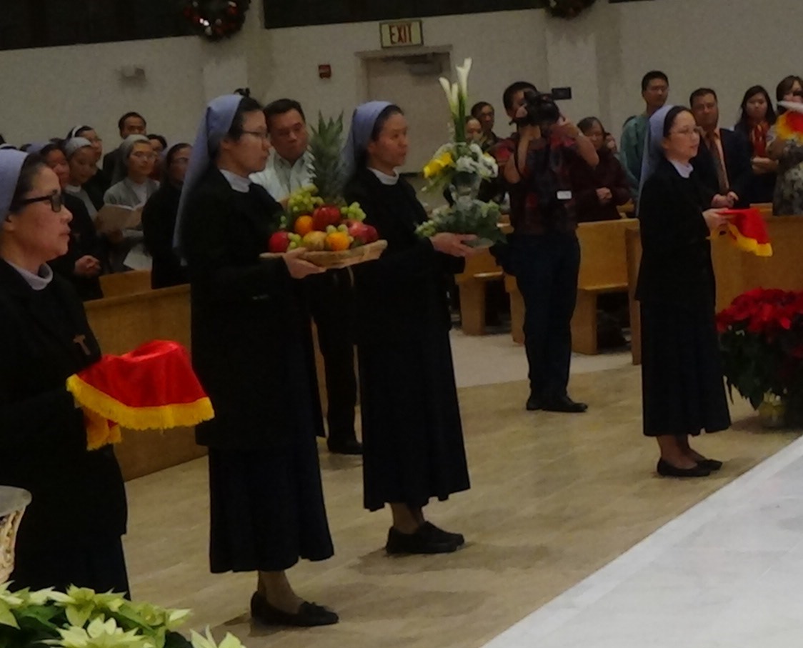 Trong Thánh lễ trên bàn thờ, người ta thấy có khoảng một tá linh mục Việt, 2 linh mục Mĩ trong Tổng Giáo Phận Washington.  Chủ tế là Lm Trần Xuân Tâm, chánh xứ Giáo xứ Mẹ VN, có thầy phó tế VN phụ lễ. Về phiá nữ tu, người ta thấy 10 Sơ Con Đức Mẹ Vô Nhiễm thuộc hai nhà bên Mĩ và một số Sơ Con Đức Mẹ Vô Nhiễm du học. Đặc biệt có Sơ Cecilia Hoàng Cung đã có một thời điều hành Cộng Đoàn Thánh Giuse và Cộng Đoàn La Vang, rồi về Việt Nam hưu trí, nay bay sang tham dự dịp mừng 100 năm. Ngoài ra còn có ba Sơ Mến Thánh Giá gốc Giáo Phận Thanh Hoá, rễ cái bén xuống đất Giáo Phận Đà Lạt, rễ nhánh lớn lan sang Tổng Giáo Phận Portland, Oregon và rễ nhánh phụ còn toẻ sang Giáo Phận Arlington, Virginia. Lại còn nửa tá Sơ khác là người Mĩ. Chưa hết mà còn có thêm l sư huynh La san VN, và một thầy dòng Phanxicô  người Mĩ. Về phía giáo dân thì ngồi gần chật nhà thờ.