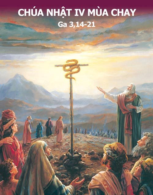 Chúa liền cho rắn bò ra khắp nơi cắn chết nhiều người. Thấy vậy, dân chúng lại ăn năn hối hận, chạy đến kêu ông Mô-sê cứu giúp. Ông Mô-sê cầu xin Chúa. Chúa bảo ông hãy làm một con rắn bằng đồng treo lên cao, để hễ ai bị rắn lửa cắn, nhìn lên rắn đồng thì được khỏi. Rắn đồng đó, như bài Tin Mừng kể lại, Chúa Giêsu dùng làm hình ảnh để chỉ về Ngài: cũng như xưa, rắn đồng bị treo lên, Ngài cũng phải bị treo lên như vậy. Và cũng thế, rắn đồng chữa cho bất cứ ai nhìn lên nó, thì Chúa cũng chữa bất cứ ai tin cậy ở Ngài. Vì thế, sau khi dùng hình ảnh để so sánh, Chúa quả quyết: “Thiên Chúa yêu thế gian đến nỗi đã ban Con Một, để ai tin vào Con của Người thì khỏi phải chết, nhưng được sống đời đời”.