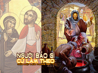 Hôm nay trong tiệc cưới Cana, tiệc rượu đang diễn ra êm xuôi. Mọi người đều vui vẻ với chén rượu, với nụ cười hân hoan. Nhưng nếu rượu lại hết. Tiệc sẽ dở dang và niềm vui sẽ không trọn vẹn. Chúa đã làm phép lạ để tiệc không bị gián đoạn bởi thiếu rượu. Chúa đã làm phép lạ để tiệc vui được tiếp diễn đến nỗi người quản tiệc cũng không hay biết. Khách dự tiệc vẫn tiếp tục cuộc vui. Xem ra ai cũng thoả mãn với chén rượu nồng nàn. Đôi tân hôn hôm ấy đã có một niềm vui trọn vẹn. Ngày hôn lễ được diễn ra một cách êm xuôi. Gia đình họ thật hạnh phúc. Hạnh phúc vì nhờ lời cầu bầu của Mẹ Maria mà Chúa đã ban cho gia đình một niềm vui trọn vẹn trong ngày thành hôn.
