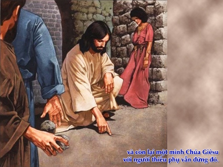 Con người thường lên án nhau, nhưng trước mặt Thiên Chúa thì tất cả chúng ta là những kẻ tội lỗi bị án phải chết. bằng chứng khi Chúa Giêsu hỏi: “Ai trong các ông sạch tội, thì cứ việc lấy đá mà ném trước đi” (Ga 8,7), chẳng ai dám cầm đá ném mà lần lượt bỏ đi chỉ còn lại người phụ nữ và Ðức Giêsu: sự khốn khổ và lòng thương xót đối diện với nhau. Chúa không nói với người phụ nữ: chị không có tội, nhưng nói: “Ta không kết tội chị. Vậy chị hãy đi và từ nay đừng phạm tội nữa” (Ga 8,11). Thật vậy, chỉ một mình Chúa Giêsu mới có thể cứu rỗi con người, vì chính Người mang lấy tội lỗi thế nhân và cho con người cơ hội để thay đổi đời sống.