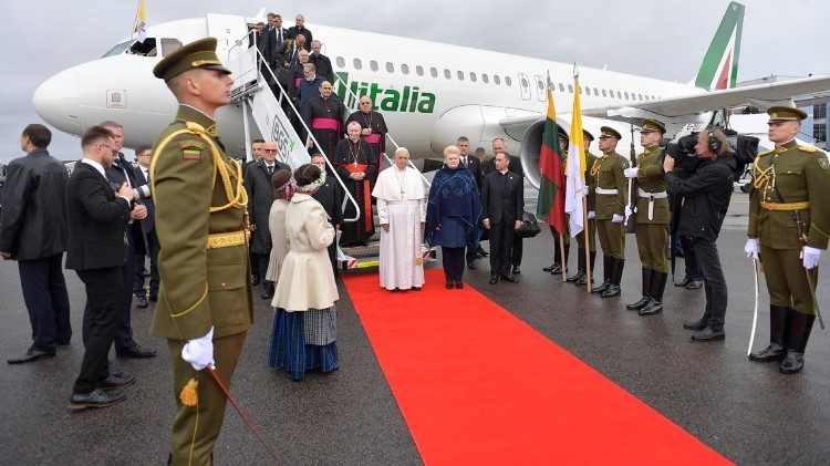 Sau 3 giờ bay, máy bay chở ĐTC đã tới phi trường quốc tế Vilnius lúc gần 11 giờ rưỡi giờ địa phương, vì giờ Lituani đi trước giờ Roma 1 tiếng.