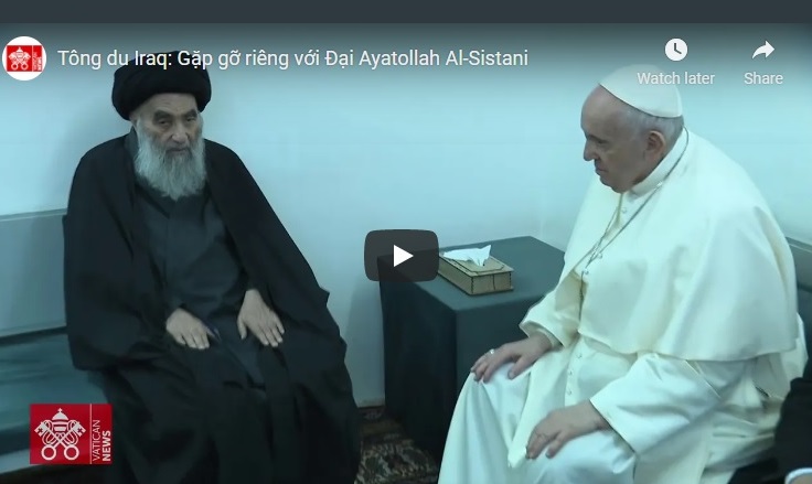 Ông Matteo Bruni, giám đốc phòng báo chí Toà Thánh, cho biết thêm: “Cuộc gặp gỡ là cơ hội để Đức Thánh Cha cảm ơn Đại Ayatollah Al-Sistani vì, cùng với cộng đồng Shiite, trước tình trạng bạo lực và nhiều khó khăn trong những năm gần đây, ngài đã lên tiếng bênh vực những người yếu nhất và chịu bách hại nhất, bằng việc khẳng định sự thánh thiêng của sự sống con người và tầm quan trọng sự hiệp nhất của nhân dân Iraq.