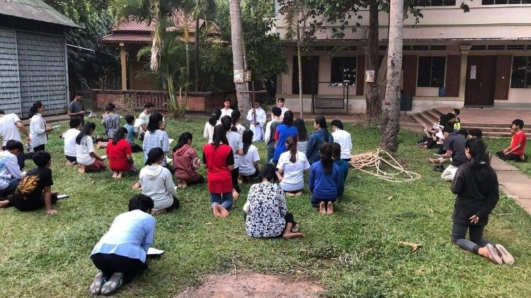 Nhà thờ được xây dựng bên cạnh tháp chuông kính Đức Trinh Nữ Maria của giáo xứ Pourti Ban, thuộc tỉnh Kandal, cách thủ đô Phnom Penh 60 km về phía nam. Giáo dân ở đây phần lớn là người Campuchia chạy sang Việt Nam trong cuộc chiến năm 1970 và trở về quê hương trong vòng 20 năm sau đó. Cách đây hai năm, các tín hữu nhận thấy cần phải xây dựng nhà thờ và mặc dù trong thời đại dịch giáo xứ bắt đầu gây quỹ.