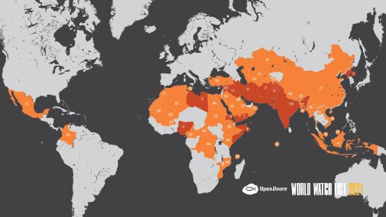 Open doors cho biết số Kitô hữu bị giết gia tăng đáng kể từ 2.983 người trong năm 2019 lên 4.761 người trong năm 2020, tức là tăng thêm gần 1.780 người. Trong số danh sách 50 nước, Bắc Triều Tiên đứng hàng đầu liên tiếp trong 20 năm. Tiếp đến là Afghanistan, Somalia, Lybia, Pakistan và Eritrea, Yemen, Iran, Nigeria, Ấn Độ. Irak thứ 11, Siria thứ 12, Sudan thứ 13 và Arập Sauđi thứ 14.