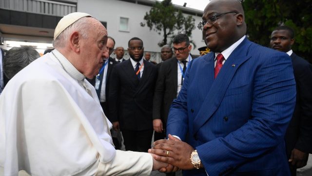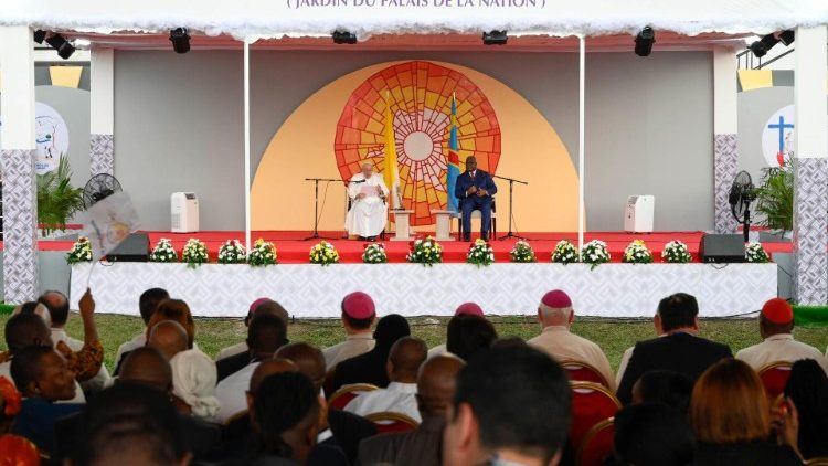 Đức Thánh Cha nói: “Khi quý vị, những người Congo, đấu tranh để bảo vệ phẩm giá và sự toàn vẹn lãnh thổ của quý vị trước những ý đồ đáng trách nhằm chia cắt đất nước, tôi đến với quý vị, nhân danh Chúa Giêsu, như một người hành hương hòa giải và hòa bình. Tôi đã rất mong muốn được ở đây và giờ đây cuối cùng tôi đã đến để mang đến với quý vị sự gần gũi, quý mến và an ủi của toàn thể Giáo hội Công giáo".