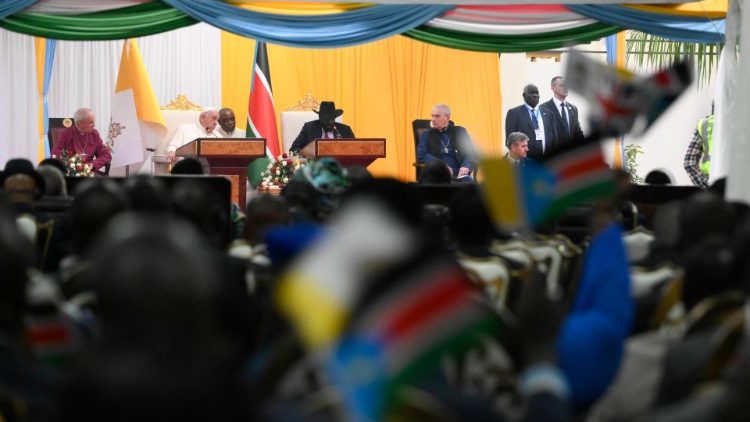 Đức Thánh Cha khẳng định ngay từ đầu rằng ngài đến Nam Sudan "như một người hành hương hòa giải, với ước mơ được đồng hành với quý vị trên con đường dẫn đến hòa bình, một con đường cong queo nhưng không thể trì hoãn được nữa. Và ngài nói rằng ngài bắt đầu cuộc hành hương đại kết vì hòa bình này sau khi nghe thấy "tiếng kêu của cả một dân tộc đang than khóc vì bạo lực mà họ phải gánh chịu, vì tình trạng thiếu an ninh kéo dài, vì sự nghèo đói tấn công họ và những thảm họa thiên nhiên hoành hành."