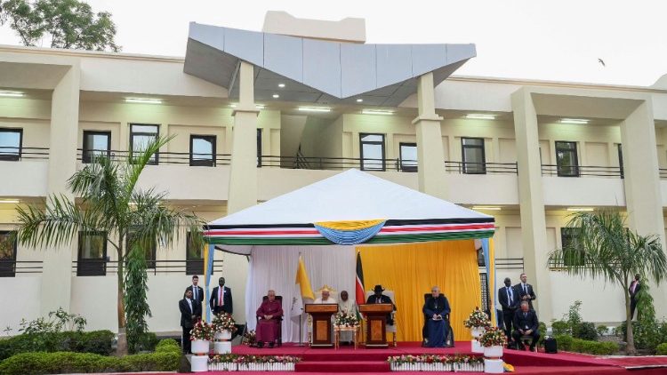 Sau khi viếng thăm xã giao Tổng thống và các Phó Tổng thống của Cộng hoà Nam Sudan, Đức Thánh Cha đã đến hoa viên của Dinh Tổng thống để gặp gỡ các cấp chính quyền, xã hội dân sự của Nam Sudan và ngoại giao đoàn tại nước này.