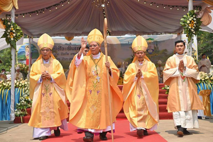 Sáng thứ Ba, ngày 25 tháng Ba vừa qua, Đại lễ Truyền tin, lễ truyền chức cho Đức giám mục Lào gốc Việt đầu tiên đã được cử hành tại Nhà thờ chính tòa Thánh Tâm của Địa phận Đại diện Tông tòa Viên Chăn, trước sự hiện diện của toàn thể các thành viên Hội đồng Giám mục Lào-Campuchia.