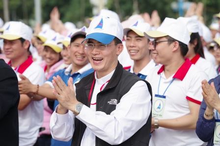 Khi Thánh Giá Đại Hội được đặt tại vị trí trung tâm của lễ đài,  Đức TGM Giuse Nguyễn Chí Linh - Giám quản giáo phận chủ nhà Thanh Hóa, đã tiến lên chào mừng các bạn trẻ và các vị chủ chăn trong giáo tỉnh Hà Nội.