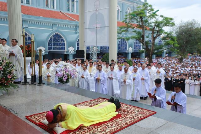 Đức Cha tân cử là linh mục giáo phận Đà Lạt, nơi mà đa số giáo dân là đồng bào dân tộc. Chính ngài đã làm cha sở một giáo xứ mà đa số tín hữu là dân tộc K’ho. Vì vậy, phụng vụ thánh lễ hôm nay có sự xuất hiện của tín hữu dân tộc K’ho để tỏ tình hiệp thông với Đức Cha tân cử.