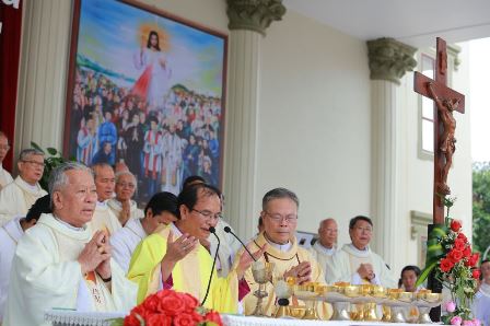 Xin được dùng lời bài hát kết lễ để thay cho bao tấm lòng phó thác giáo phận Thanh Hóa nguyện dâng lên Thiên Chúa Ba Ngôi toàn năng: “Bao say mê nguyện ước Giáo phận lớn lên. Cho nơi nơi rực sáng trong một quyết tâm: cùng thả lưới nơi biển nước sâu và chỉ sống cho một quyết tâm ra sâu mà thả lưới”.