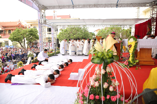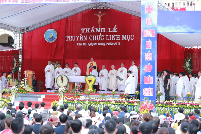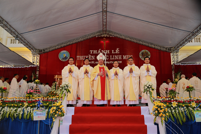 Đức Tổng Giám mục tân cử Giuse Vũ Văn Thiên đã chủ sự Thánh lễ Truyền chức Linh mục cho 5 thầy phó tế giáo phận Hải Phòng, tại giáo xứ Xâm Bồ, lúc 15h00 ngày 7 tháng 12 năm 2018.