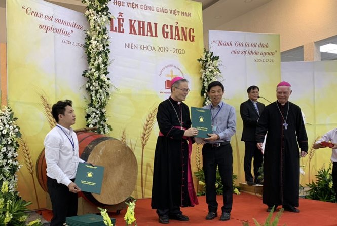 “Tất cả mọi thành phần Dân Chúa Việt Nam được mời gọi cùng cộng tác xây dựng Học viện Công giáo Việt Nam với ý nghĩa đầy đủ của nó” . Đức Tổng Giám mục Giuse Nguyễn Chí Linh đã nhấn mạnh điều này trong lễ Khai giảng năm học 2019-2020 của Học viện Công Giáo Việt Nam (HVCGVN) – được cử hành vào sáng ngày 14.09.2019 tại số 25 đường số 9, Khu phố 1, Phường Bình Thọ, Thủ Đức, TP.HCM.
