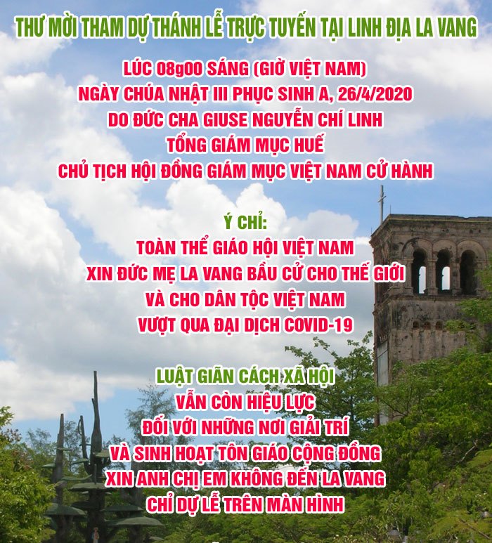 Có khoảng 105 000 giáo dân Việt Nam cùng hiệp nhau cầu nguyện để đại dịch được chấm dứt trên đất nước Việt Nam và trên toàn thế giới. Giáo dân tham dự trực tuyến thánh lễ do Đức Tổng Giám mục Giuse Nguyễn Chí Linh cùng đồng tế với 10 linh mục cử hành vào ngày chúa nhật 26 tháng 4 tại Đền thánh Đức Mẹ La Vang.