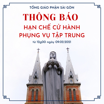 Tòa Tổng Giám mục Sài Gòn thông báo: V/v hạn chế sinh hoạt mục vụ trong tình trạng dịch bệnh. Tòa Tổng Giám mục Sài Gòn thông báo: V/v hạn chế sinh hoạt mục vụ trong tình trạng dịch bệnh.