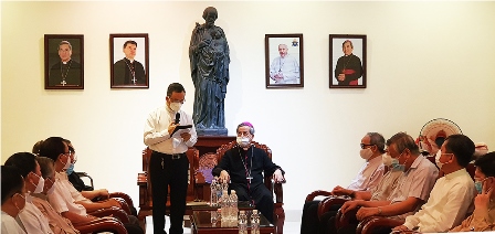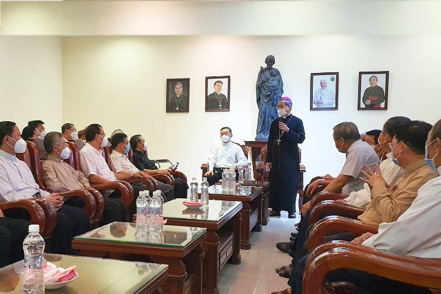 Cuộc gặp gỡ thân tình này – do Đức Tổng Giám mục Giuse Nguyễn Năng quy tụ – trước hết đã diễn ra tại nhà khách Đại Chủng viện Thánh Giuse (ĐCV) của Tổng Giáo phận Sài Gòn (TGP). Các linh mục thuộc ĐCV và Trung tâm Mục vụ TGP đã cùng lắng nghe vị Cha chung TGP : vui mừng vì Giáo Hội có thêm một vị Giám mục, nhưng cũng buồn vì TGP Sài Gòn vắng thiếu đi một giáo sư Kinh Thánh, một phó Giám đốc chủng viện nhiệt thành…
