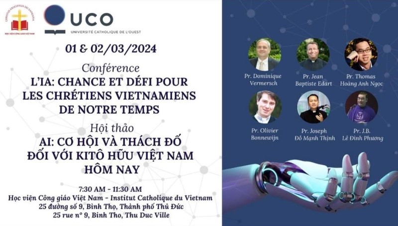 Hội thảo về “AI: Cơ hội và Thách đố đối với Kitô hữu Việt Nam" đã diễn ra vào sáng thứ Sáu và sáng thứ Bảy, ngày 01 và 02/03/2024 tại Học Viên Công Giáo Việt Nam (HVCG).