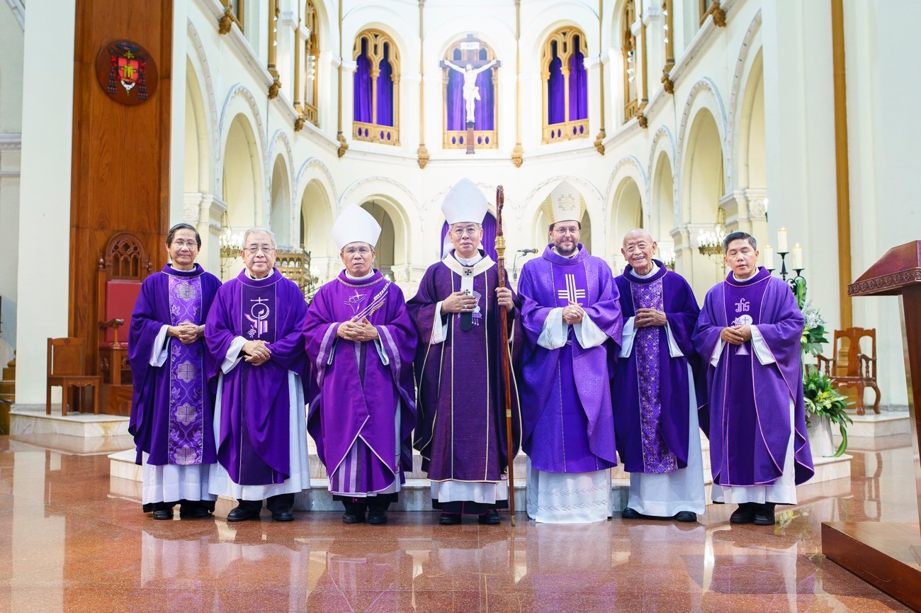 Kết thúc thánh lễ, ĐHY Giorgio Marengo đã cùng chụp ảnh lưu niệm với ĐGM Giuse, ĐGM phụ tá và linh mục Tổng đại diện và các cha phó nhà thờ Chính tòa Sài Gòn.