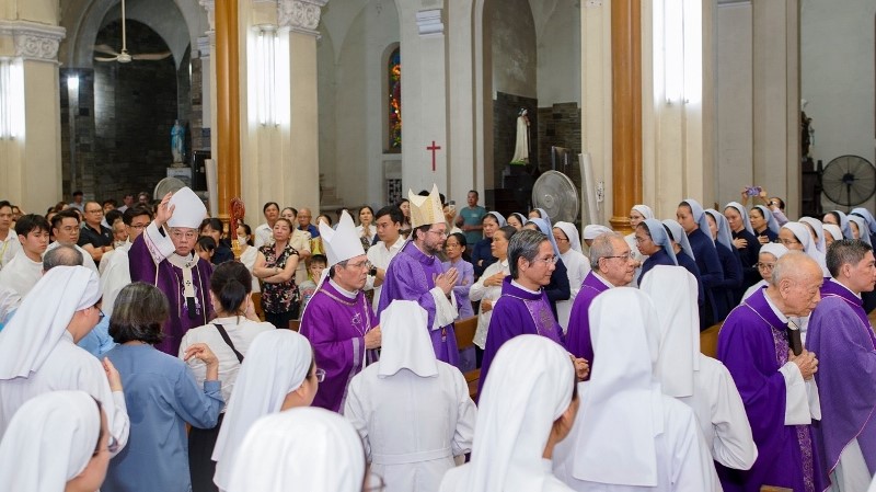 TGPSG - “Chúng con đến đây để tri ân lòng yêu mến của Đức Tổng Giám mục Giuse Nguyễn Năng, các cha của Giáo hội Việt Nam đối với Giáo hội Mông Cổ trong sự kiện Đức Thánh Cha Phanxicô tông du Mông Cổ vào tháng 9 năm 2023” - Đức Hồng y (ĐHY) Giorgio Marengo, Giám mục Phủ doãn tông tòa Ulaanbaatar - Mông Cổ đã chia sẻ sau thánh lễ chiều thứ Bảy 16.03.2024 tại Nhà thờ Đức Bà Sài Gòn.
