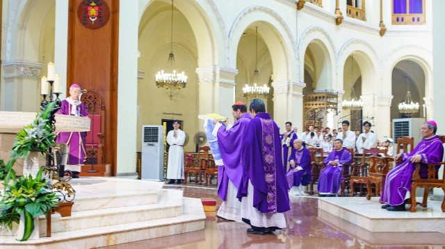 Trước khi bắt đầu thánh lễ, ĐTGM Giuse đã có đôi lời giới thiệu ĐHY Giorgio Marengo với cộng đoàn dân tham dự Thánh lễ Chúa nhật thứ 5 Mùa Chay: