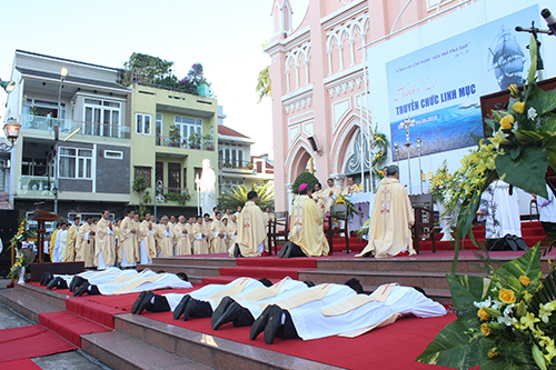 Nghi thức truyền chức Linh mục thứ tự diễn ra cách trang nghiêm và thật cảm động. Các Phó tế lần lượt thưa “có mặt” khi tên mình được xướng rồi tiến lên trước mặt Đức Giám mục. Các tiến chức linh mục là những người trẻ tuổi đã biết nuôi chí lớn, vượt qua thân phận và hoàn cảnh, nhận ra và quảng đại đáp lại tiếng Chúa kêu mời, lời Mẹ Giáo Hội kêu gọi. Phủ phục trước Bàn thờ trong tiếng kinh cầu các Thánh, ngay sau lưng vị Giám mục đang gối quỳ, ngay trước mắt cộng đoàn đông đảo, các tiến chức như trải lòng trước Chúa và Hội Thánh, vừa thấy mình thật bé nhỏ mọn hèn, vừa hạnh phúc trào dâng. Lời Tiên tri Isaia gói ghém trọn tâm tình này: “Này là tôi tớ Ta nâng đỡ, người Ta tuyển chọn, Ta đem lòng sủng ái, Ta ban Thần Khí Ta trên người” (Is 42, 1-2).