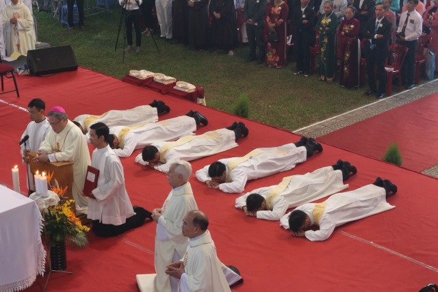 Đức Tổng Giám Mục Giuse Nguyễn Chí Linh, Tổng Giám Mục Tổng Giáo Phận Huế chủ sự Thánh lễ truyền chức Linh mục. Cùng đồng tế với Ngài, có Cha Arturo Sosa- Bề Trên Cả Dòng Tên và quý cha Phụ tá của ngài, Cha Vinh-sơn Phạm Văn Mầm, Giám Tỉnh Dòng Tên Việt Nam, và khoảng 110 linh mục trong và ngoài Dòng.
