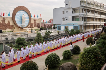 Đúng 9 giờ, đoàn rước bắt đầu tiến vào thánh đường trong tiếng kèn vang và khúc nhạc rất quen thuộc trong lời ca nhập lễ “từ ngàn xưa Ta đã yêu con, Ta chọn con giữa muôn người” diễn tả tất cả tâm tình hân hoan và hạnh phúc của toàn thể cộng đoàn dân Chúa, đặc biệt gia đình các tân chức. Trong giây phút thiêng liêng đáng nhớ này, các ân nhân, thân nhân, bạn bè của các tân chức lòng ngập tràn niềm vui cùng nhau hiệp nguyện và dâng tâm tình tạ ơn Thiên Chúa vì muôn ơn lành Chúa đã ân ban trên các tân chức, cách chung trên toàn thể cộng đoàn dân Chúa.