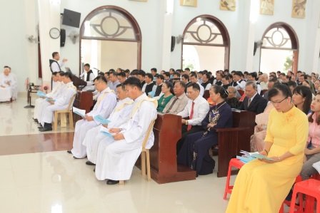 Sau lời nguyện Hiệp lễ, Viện phụ Gioan Boscô thay mặt Đan viện dâng lời cám ơn Đức Cha, cha Tổng Đại diện, quí Bề trên, quí cha, quí tu sĩ và quí thân nhân, ân nhân, quí khách đã dành cho đan viện sự hiện diện, và những lời cầu nguyện thật quý báu. Viện phụ cũng thay lời cộng đoàn chúc mừng Kim Khánh Linh mục của Đức Cha. Vào ngày 01.05. Sau đó Đức Cha thay lời cho quý cha, quý tu sĩ, quý khác chúc mừng Đan viện có thêm Phó tế và các Tân Linh mục. Chúc mừng cha mẹ, thân nhân của các tiến chức.
