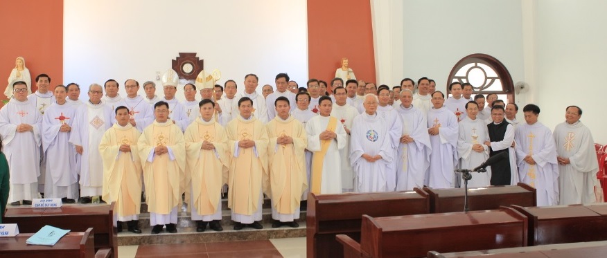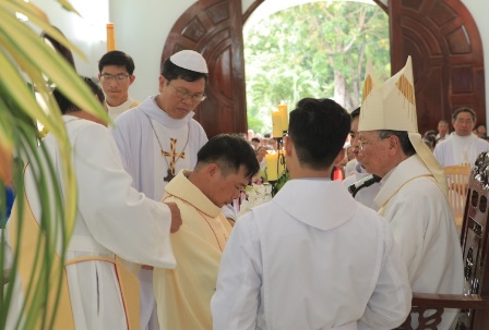 Vâng, sáng nay vào lúc 9g00, Chúa nhật, ngày 28.04.2019 Đức Cha Tôma Nguyễn Văn Trâm, Giám Quản Tông Tòa Giáo phận Phan Thiết đã chủ tế Thánh Lễ Phong Chức Linh mục cho 5 Đan sĩ Phó tế và Phong Chức Phó tế cho 1 Đan sĩ thuộc Đan viện Xitô Thánh Mẫu Châu Thủy. Cùng đồng tế có cha Tổng Đại Diện Giáo phận Phan Thiết, cha Gioan Boscô Trần Văn Thành, Viện phụ đan viện Châu Thủy; nguyên Viện phụ nhà mẹ Châu Sơn Đơn Dương Eprem Trịnh Văn Đức, cha Giám đốc chủng viện thánh Nicolas, quý Bề trên, quý cha Hạt trưởng; khoảng 70 linh mục trong và ngoài Giáo phận, quý linh mục trong Hội Dòng Xitô Thánh Gia. Quý tu sĩ nam nữ, cha mẹ, thân nhân, ân nhân của các tiến chức cũng như của Đan viện.