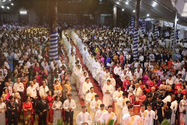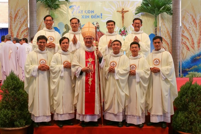 Đồng tế với Đức Cha Giuse có cha Giám Tỉnh Vinh Sơn Phạm Văn Mầm, Sj; cha Socius An-rê Phạm Văn Tú, Sj; cha Thụ ủy Huấn luyện Phanxicô Xaviê Nguyễn Hai Tính, Sj; cha Viện trưởng Học viện Giuse Phạm Tuấn Nghĩa, Sj và gần 110 quý cha trong và ngoài Dòng.