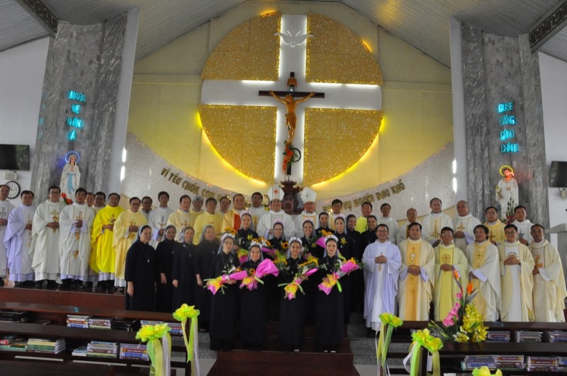 Thánh lễ kết thúc trong niềm vui ngập tràn. Mọi người chụp hình lưu niệm với các khấn sinh, sau đó chia sẻ niềm vui trong bữa cơm trưa thân mật.