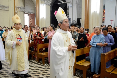 Đồng tế với ngài có Đức Giám mục (ĐGM) Louis Nguyễn Anh Tuấn cùng hơn 130 linh mục (Lm).