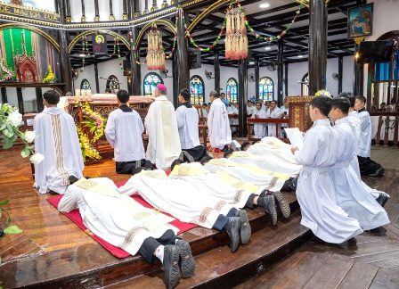 Vào lúc 5h30 thứ Năm ngày 01.10.2020, tại Nhà thờ Chính Tòa Kon Tum, Đức Cha Aloisiô Nguyễn Hùng Vị, Giám Mục Giáo phận đã cử hành thánh lễ truyền chức linh mục cho 7 thầy thuộc giáo phận Kon Tum, mãn khóa Đại chủng viện Xuân Bích Huế.