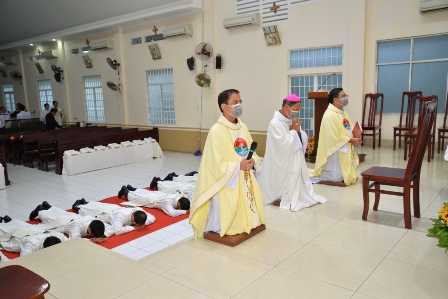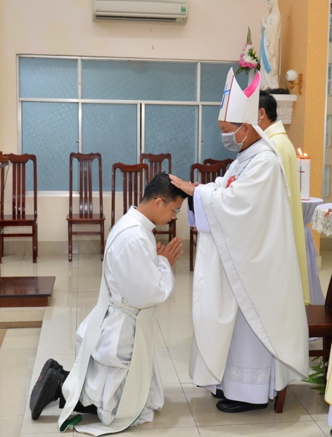 Vì dịch bệnh Covid nên thánh lễ Truyền chức được cử hành cách đơn giản nhất có thể. Ngay cả các ông bà cố, các cha bảo trợ của các tân chức cũng chỉ hiệp thông với các con của mình trong thánh lễ trực tuyến.