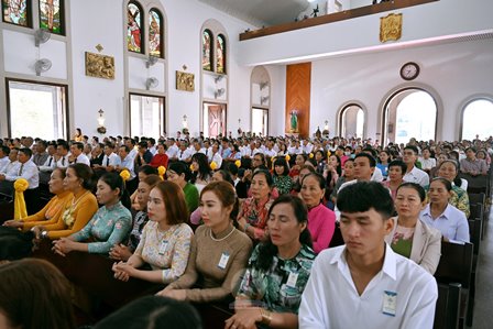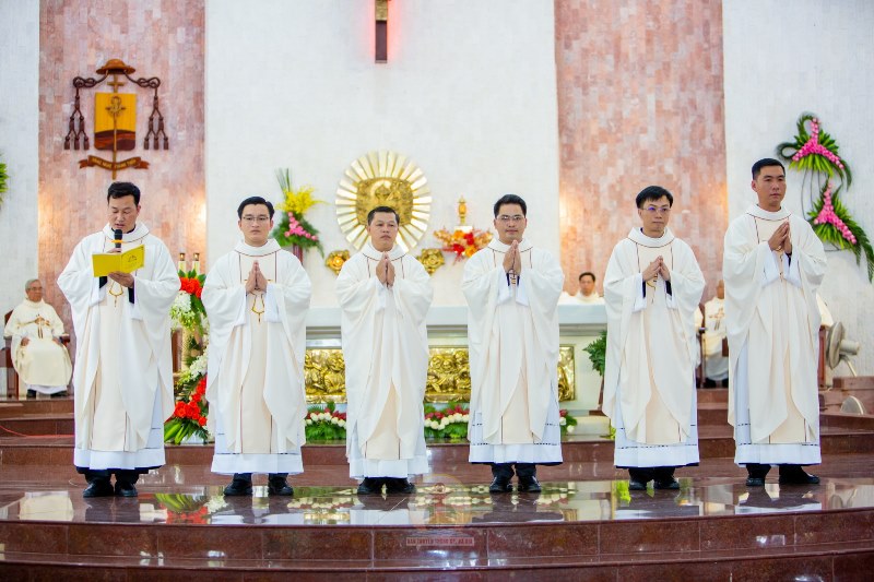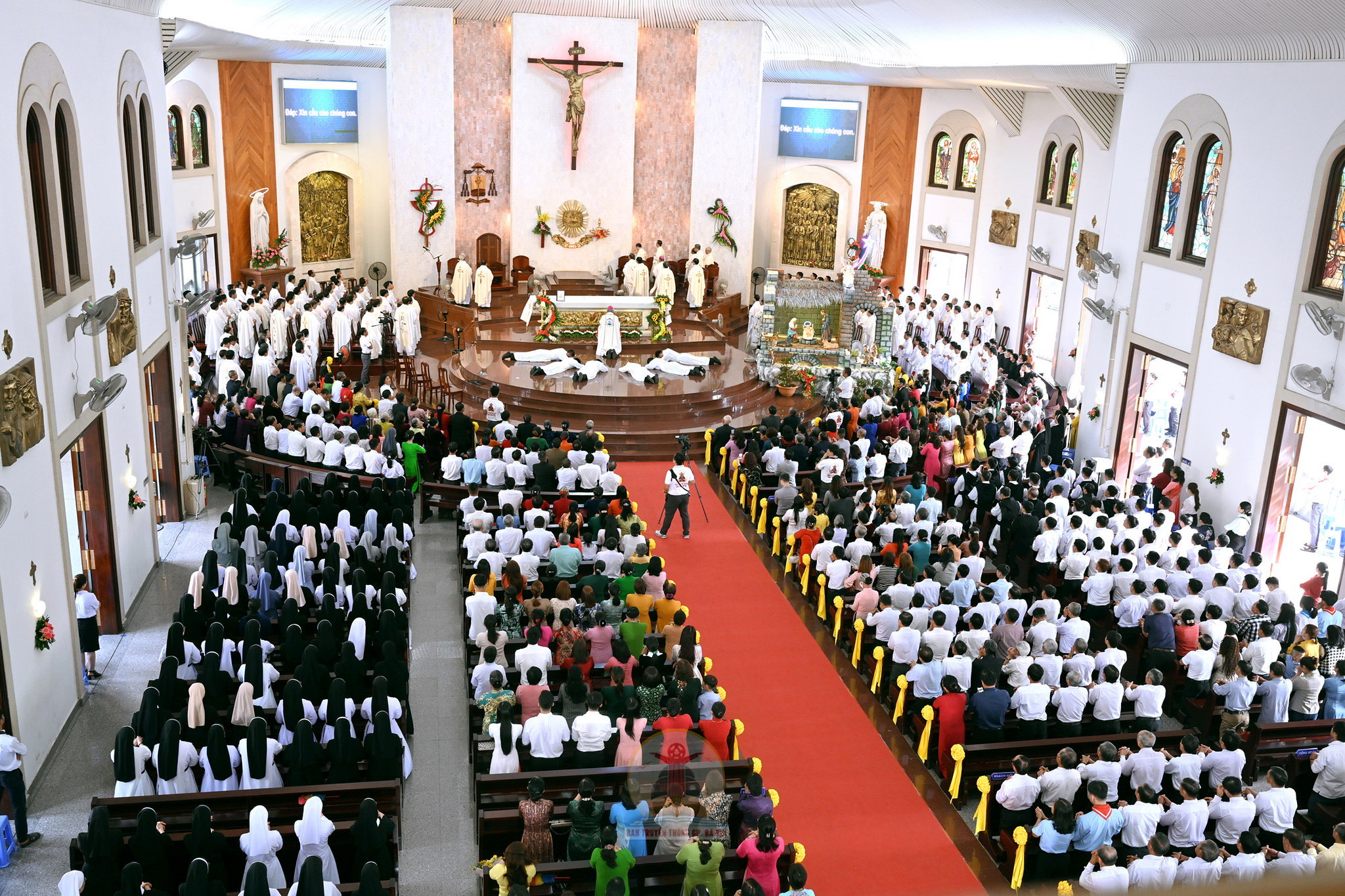 Đồng tế với ngài có có Đức cha Tôma Nguyễn Văn Trâm – nguyên Giám mục Giáo phận Bà Rịa, Cha Tổng Đại diện Giuse Võ Công Tiến, Cha Giuse Đoàn Như Nghĩa – Giám đốc Chủng sinh Giáo phận, quý cha, quý tu sĩ nam nữ, chủng sinh, quý ân thân nhân của các tiến chức và đông đảo cộng đoàn.
