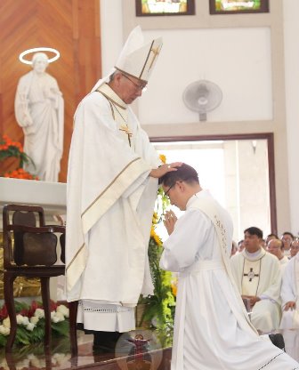 Trong phần huấn dụ, Đức cha Giáo phận đã mượn lời của Đức Thánh cha Bênêđictô XVI trong chúc thư tinh thần của ngài vừa được Tòa Thánh công bố để chia sẻ những thao thức của mình với cộng đoàn về lời mời gọi của Chúa và sự đáp trả của mỗi người. “Khi tham dự nghi lễ truyền chức thánh, Hội Thánh muốn mỗi người phải ý thức và chu toàn sứ mạng mà Chúa đã trao cho từng người. Chúng ta phải luôn đáp trả lời gọi, lời gọi của đời sống hôn nhân, lời gọi của các tu sĩ, lời gọi của những người sống đời thánh hiến. Hôm nay chúng ta không chỉ cầu nguyện cho các thầy, nhưng cũng hãy cầu nguyện cho chính mình, để lời đáp trả và sứ vụ mà chúng ta lãnh nhận trong lòng Hội Thánh ngày càng trọn vẹn hơn …”