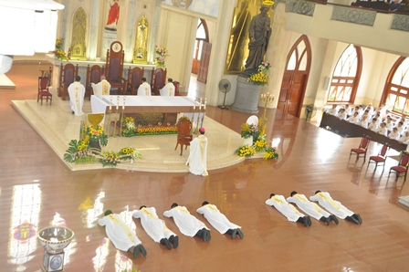 Ngỏ lời trước thánh lễ, Đức cha Giuse mời gọi cộng đoàn dâng lời tạ ơn Thiên Chúa vì hồng ân lớn lao trong thiên chức Linh mục mà Chúa đã ban cho Giáo hội, cho giáo phận Phú Cường khi có thêm 7 tiến chức phục vụ trong cánh đồng truyền giáo cũng như thi hành sứ vụ loan báo Tin mừng cho muôn dân.
