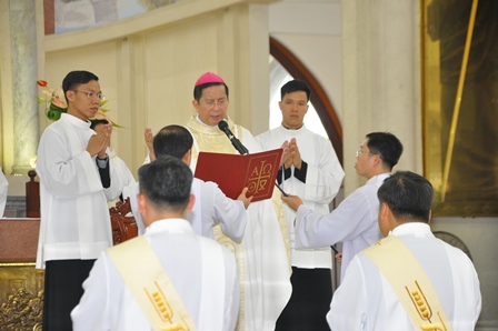 Trong phần chia sẻ Lời Chúa, Đức cha Giuse đã nhấn mạnh đến phẩm vị cao quý của thánh chức Linh mục: “Là những người được tách biệt, được chọn riêng, dành riêng để phục vụ Chúa và Hội thánh trong bậc sống độc thân, điều đó cho thấy được sự chọn lựa của Chúa đối với các tiến chức hôm nay. Các tiến chức đến từ nhiều giáo xứ khác nhau, được mời gọi dấn thân để phụng sự Chúa và sống vai trò tư tế của mình”. Đây là một cơ hội, là một ân ban đặc biệt Thiên Chúa dành tặng cho những người mà Ngài kêu gọi.