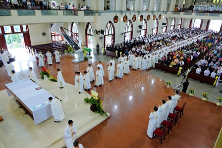 Nghi thức phong chức kết thúc, cộng đoàn tiếp tục tham dự thánh lễ với phần phụng vụ Thánh Thể.