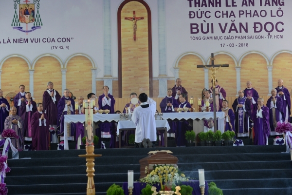 - Ngày thứ Sáu 16.3.2018, lúc 5 giờ sáng, sẽ di quan ra nhà thờ Chính Toà Đức Bà và 6 giờ sẽ có thánh lễ đồng tế cầu nguyện cho ngài. Sau thánh lễ, anh chị em có thể kính viếng ngài.