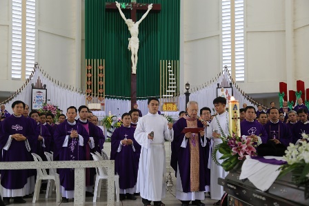 Thánh lễ An Táng tại Nhà Thờ Chánh Tòa, lúc 09 giờ 30 Thứ hai, ngày 28 tháng 5 năm 2018. An táng tại phần mộ các Linh Mục trong Đất Thánh Tân Ngãi.