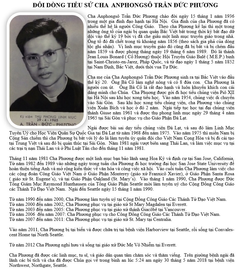 Nguồn: Bản Tin Mục Vụ, Giáo Xứ CTTđVN, Tổng Giáo Phận Seattle