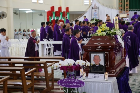 Thánh lễ An Táng tại Nhà Thờ Chánh Tòa, lúc 09 giờ 30 Thứ hai, ngày 20 tháng 8 năm 2018. An táng tại phần mộ các Linh Mục trong Đất Thánh Tân Ngãi.