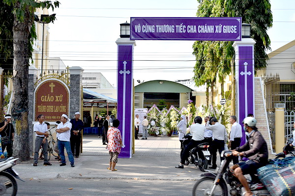 Linh cữu Cha Giuse quàn tại Giáo xứ Chợ Cũ.