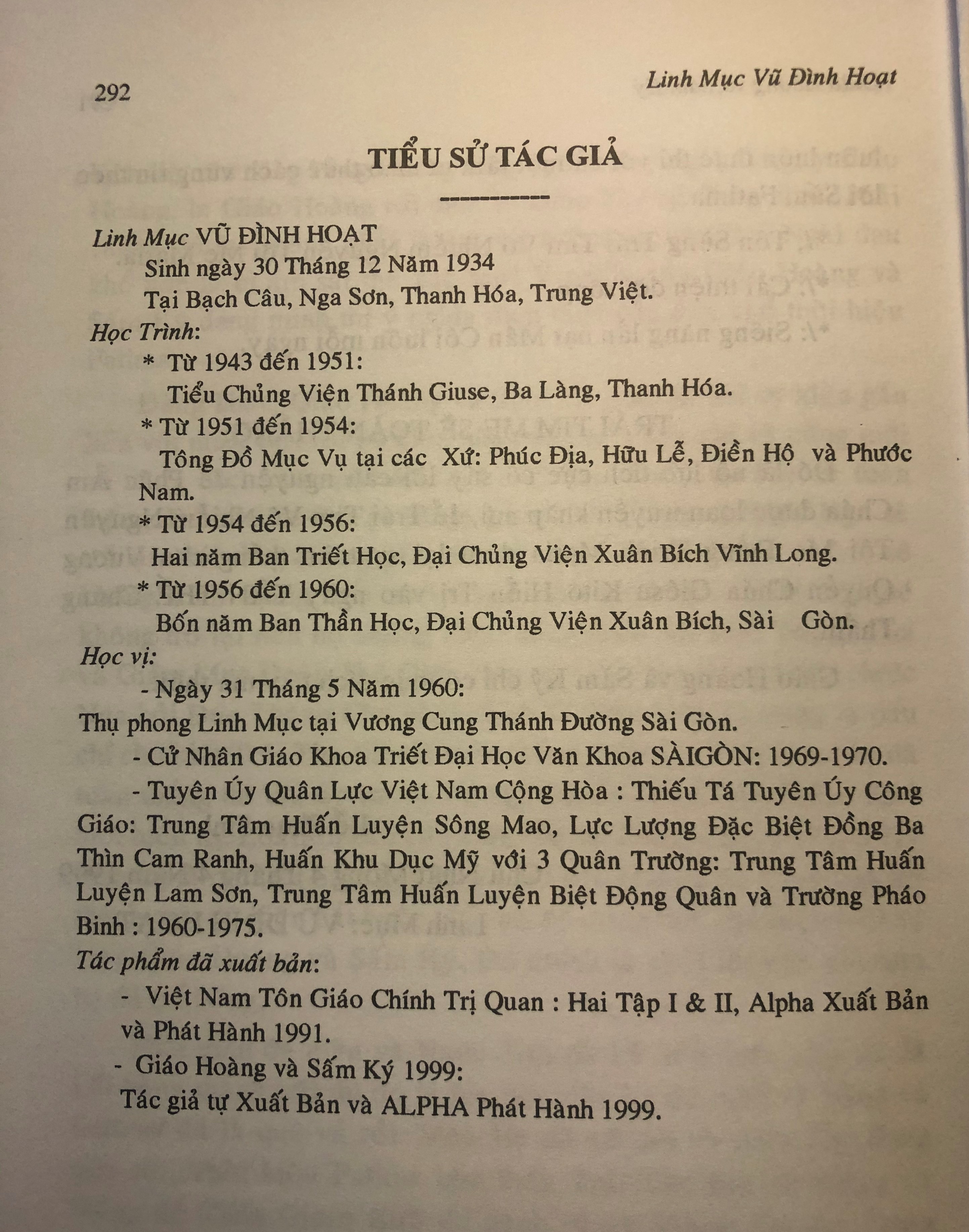 Mấy dòng tiểu sử bổ túc: do Linh mục Trần Bình Trọng soạn thảo: