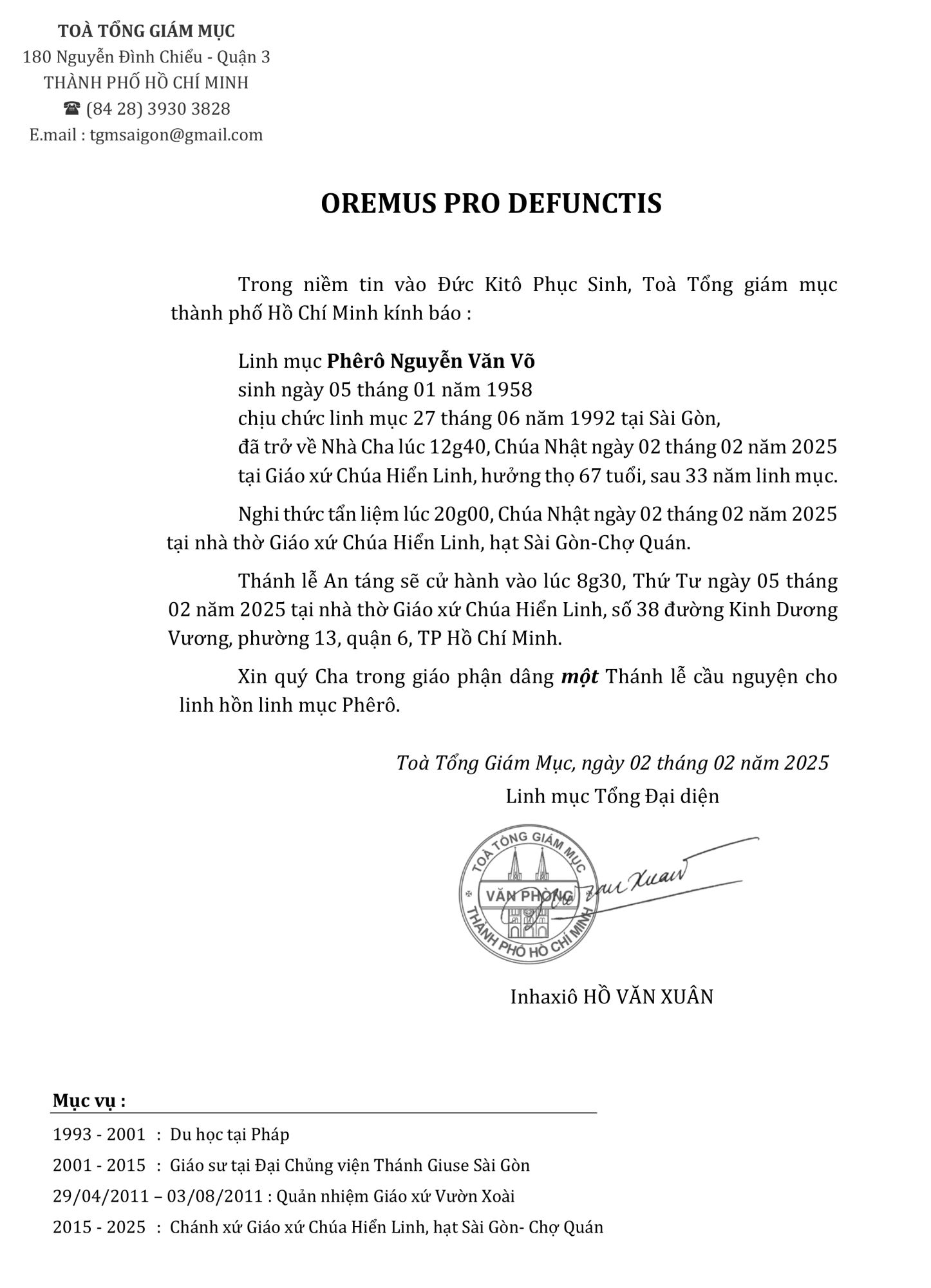 Lm Nguyễn Văn Võ mới qua đời tại Sài Gòn