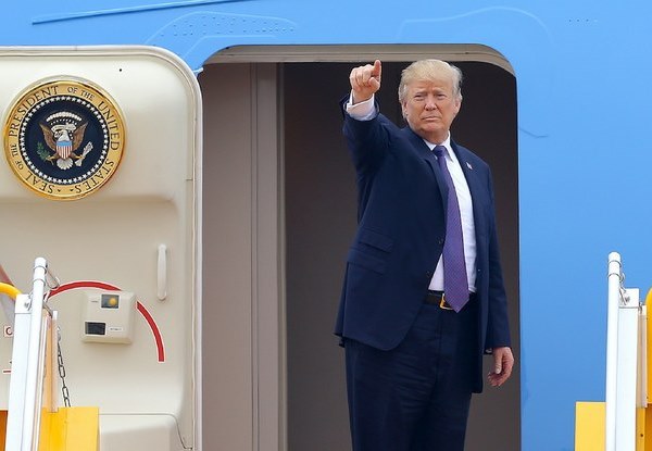 Tổng thống Hoa Kỳ Donald Trump giơ tay chào trước khi lên máy bay Air Force One rời Việt Nam để đến Philippines hôm 12/11/2017. AFP